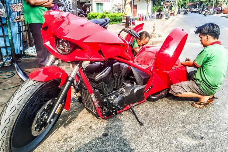 Thật ra đây chính là phiên bản mới của chiếc Honda Fury 1300 độ trống đồng Đông Sơn từng thu hút sự chú ý trong cộng đồng chơi xe Việt Nam hồi giữa năm 2014.